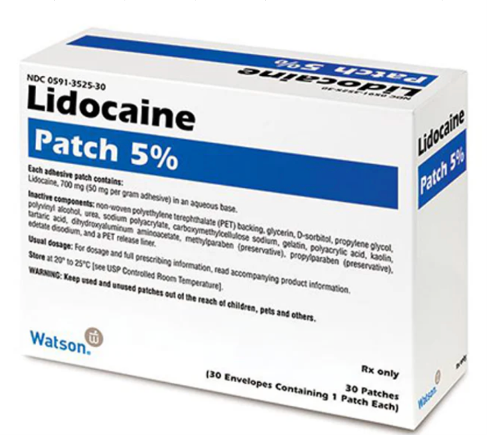 Safety: Do not use with a heating pad or electric blanket, as heat can increase lidocaine absorption. Fold used patches in half, sticky sides together, and dispose of them safely away from children and pets, as they still contain active medication.